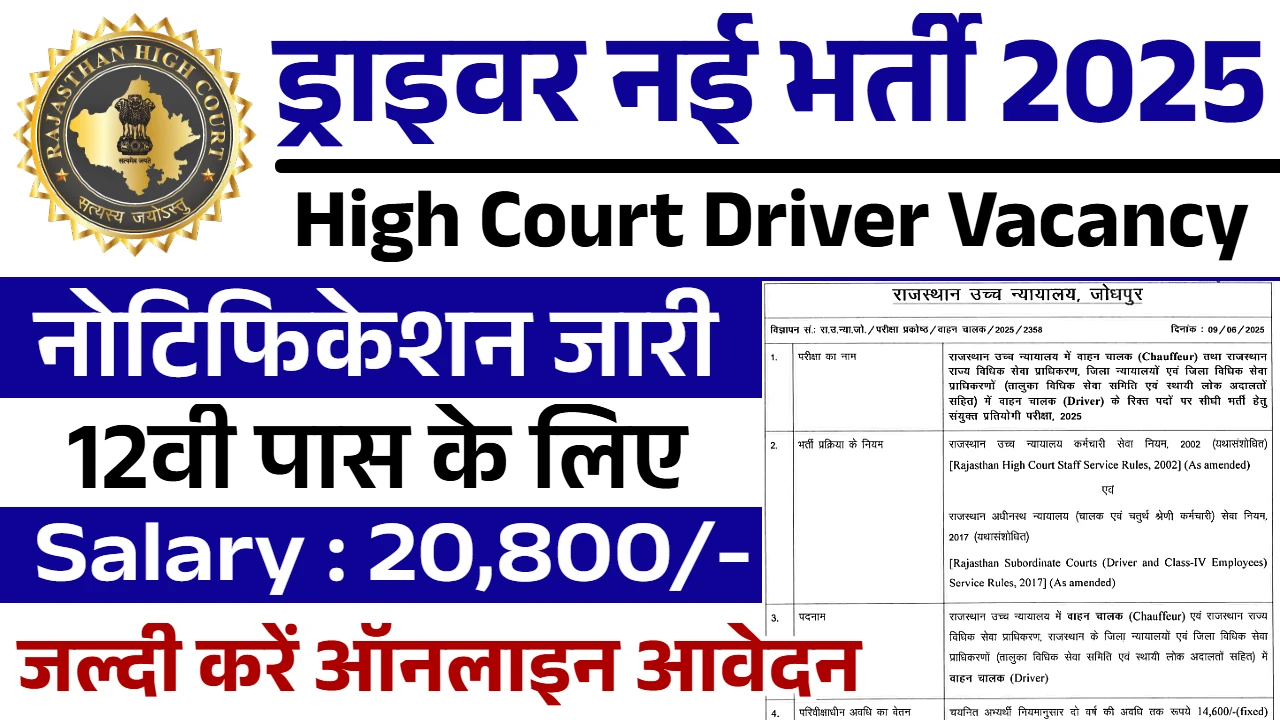 राजस्थान राज्य में हाई कोर्ट के द्वारा महिला तथा पुरुष उम्मीदवारों के लिए ड्राइवर पदों पर नियुक्त होने का बहुत ही अच्छा तथा सुनहरा अब कर दिया गया है क्योंकि इस बार हाई कोर्ट ने ड्राइवर के 58 पदों के लिए 7 जून 2025 को भर्ती का नोटिफिकेशन जारी किया है।